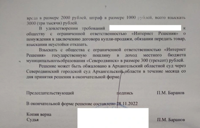 В итоге, 30.08.2023 апелляционная жалоба была рассмотрена, решение первой инстанции было отменено, а апелляционная инстанция вынесла новое решение в котором исковые требования были удовлетворены: