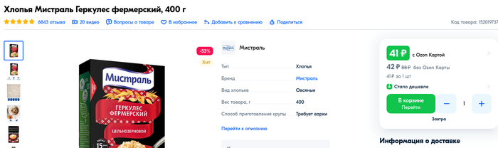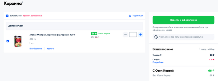 Добавляю его в корзину: Неприятно удивляюсь цифре в 66 руб вместо 41.