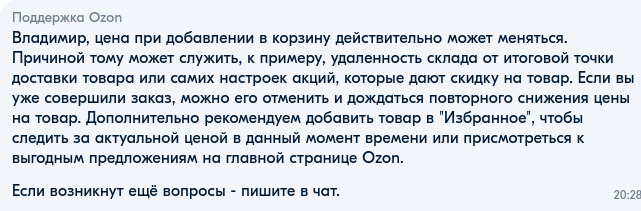 @Ozon, это ваша официальная позиция? Цена в корзине может быть выше заявленной?