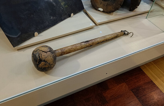 В витринах с разными экспонатами эпохи Позднего Средневековье находим... безмен из капа. Ну вы же знаете, что это такое, верно? Мы пользуемся безменами, да ещё из капа, каждый день, пояснений не нужно.