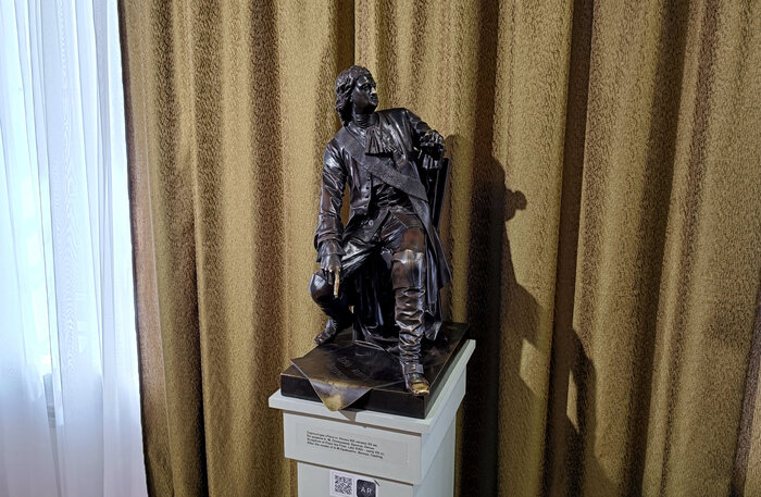 Бронзовая скульптура Петра привлекает внимание посетителей в зале о петровских заводах. Это одна из копий произведения скульптора Александра Опекушина, который в 1872 году к двухсотлетнему юбилею со дня рождения императора сделал подобную статуэтку, за что ему присудили звание академика Академии художеств. Какой-то интересной истории у копии нет, кроме загадки, когда Петру успели протереть нос, палец и туфлю. Это посетители музея так хулиганят? Нехорошо, нехорошо...