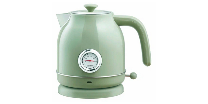 Это не только яркий аксессуар с оригинальным дизайном, но и функциональный электрочайник. Объем 1,7 литра и мощность позволяют быстро кипятить воду, а механический термометр помогает точно контролировать температуру, что удобно для заваривания зеленого чая или детских смесей.