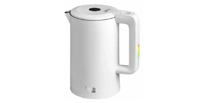 Это умный чайник мощностью 2 кВт и объемом 1,7 литра с возможностью управления через приложение Ready for Sky. Он поддерживает температурные режимы 40°C, 55°C, 70°C, 85°C и кипячение, а с помощью приложения можно выбрать любую температуру с шагом 1°C. Чайник поддерживает подогрев до нужной температуры и её длительное поддержание, что удобно для тех, кто любит современные технологии.