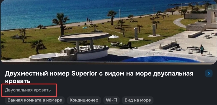 Очень мало отелей было в г.Пафос с двуспальными кроватями. Но на Ozon Travel именно в этом отеле мы нашли заветные слова "двуспальная кровать":