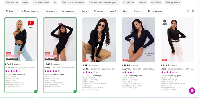 Показательный пример. Одинаковый товар и карточки. ТОП-1 торгует всего на 11 рублей дешевле ближайшего конкурента, а продаж в два раза больше. И даже так, он зарабатывает минимум 5,5% чистыми с каждой продажи.