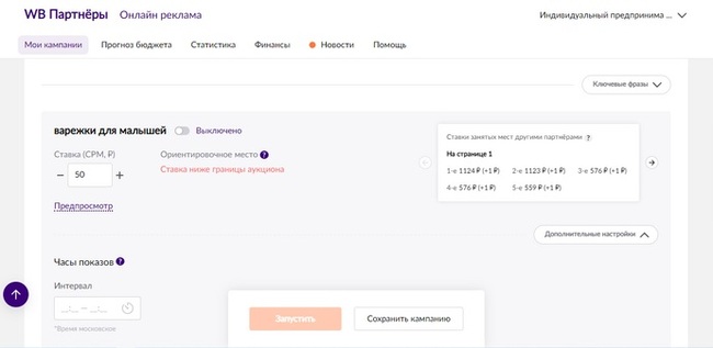 Существует еще такая проблема - ставки меняются каждую минуту. Конкурент может поставить ставку на 1 рубль больше вас в тот же момент и ваша карточка переместится на 3 рекламное место, и вы, оплачивая всего на 1 рубль меньше за 1000 показов, будете получать в несколько раз меньше продаж. Потому рекомендую или выставлять аукцион сразу на 3-5 рублей дороже, или использовать "автобиддер". Это программа, которая отслеживает текущие рекламные ставки, и автоматически повышает или понижает вашу.