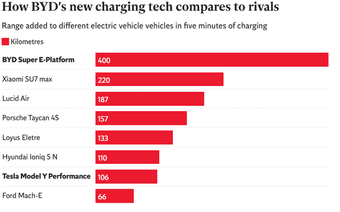 Компания Илона Маска теперь проигрывает не только битву брендов, но и свое технологическое доминирование. А масштаб прорыва в области аккумуляторов означает, что BYD бросает вызов не только Tesla, но и многолетнему доминированию автомобилей с двигателями внутреннего сгорания.