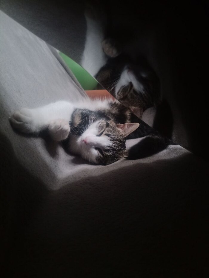 Колим уколы и Боцман постепенно идет на поправку. Спит в большой тяжелой коляске для человеческих детей. Сам выбрал себе место, а я и не возражаю. :)