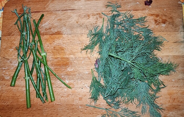 Укроп: дрова в бульон, веточки при подаче. 1 пучок.