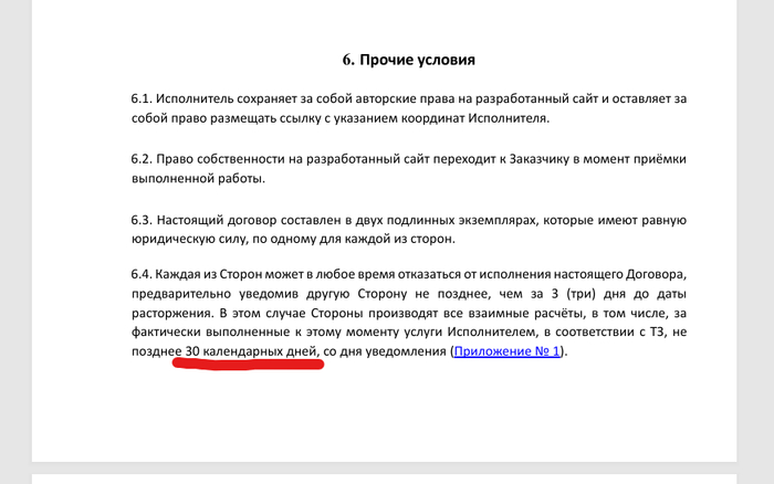 Согласно пункту договора, возврат денежных средств должен осуществляться в течении 30 дней. Да, срок не маленький, но это максимально возможный срок, на практике возврат делаю в течении недели (было всего пару раз). Однако клиент дал мне на все 2 дня, и сказал если не верну всю сумму, напишет плохой отзыв, за то что я НЕ ХОЧУ НАРУШАТЬ ЗАКОН РФ и не хочу быть соучастником.