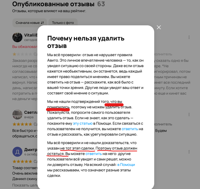 Я написал в службу поддержки Авито и изложил всю ситуацию, в том числе все переписки и даже видео файлы. Однако Авито говорит что отзыв останется, так как мы (ВНИМАНИЕ) не помирились.