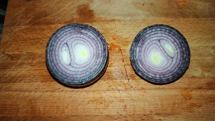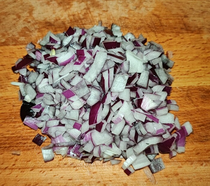Лук режем на 2 части, одну( донце) в бульон, вторую на мелкий кубик.