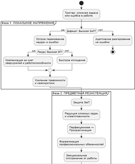 В решении этого вопроса будем опираться на Специальную теорию индивидуальности (В.М. Русалов) и процессуальную модель эмоционального выгорания В.В. Бойко. Ниже представлено достаточно утрированное представление о том, как можно применить принцип избирательной уязвимости к прогнозированию выгорания в профессиональной сфере на предположении, что особенности нервной системы могут определять индивидуальную траекторию выгорания.