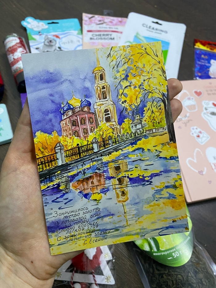 А еще, когда я увидела, что посылка идет из Рязани, я подумала-вот бы получить сувенир с Есениным.