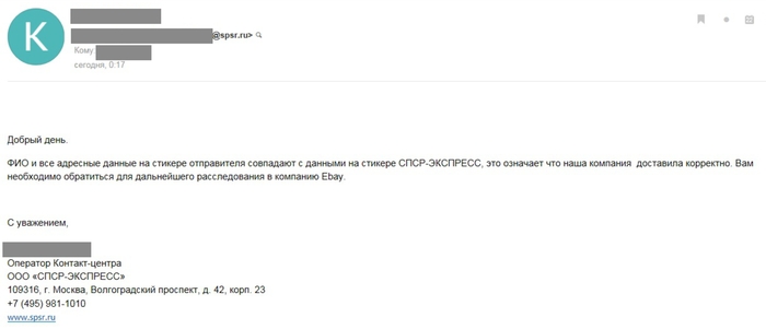 Так как поначалу решил, что это СПСР облажались и просто перепутали/потеряли/забрали мою посылку, а мне вручили другую, то написал им обращение, приложив все фото и видео, на что получил ответ:
