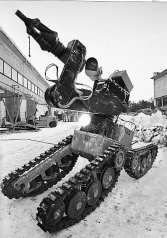 Раз начал про забугорных роботов, то закончу уже про них. В 1986 г. во всю работал финский самоходный погрузчик TORO 400. С ними случилась забавная ситуация: электроника управление этих машин не была герметизирована и при очередной дезактивации всю систему залили водным раствором. Свои задачи в 1987 г. успешно выполняли переделанные под дистанционное управление два финских гидравлические манипулятора Foresteri, очищавшие крыши различных зданий, всего 700 кв.м. Ещё годом позже трудился немецкий кран Liebherr и роботы-стропальщики MF-4. Кроме них в ФРГ закупили дистанционной управляемый бульдозер Liebherr PR-751, экскаватор и манипулятор.