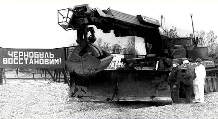 Контора со страшным названием «Сибцветметавтоматика» для помощи ликвидаторам раскопала проект 70-х гг. по переделке бульдозера ДЭТ-250М под дистанционное управление. Вместе с МАДИ была доделана под чернобыльские условия лампово-релейная система дистанционного управления (СДУ) РОГУН. Уже 14 мая техника пошла на испытательный полигон, а 15-го числа самолёты с ней стали садиться в киевском аэропорту Жуляны. 10 бульдозеров было готово к 22 мая. Из них 7 штук работали у самого места аварии — строили дороги для подъезда техники, выравнивали стройплощадку, подготавливали основание для фундамента Саркофага. А работы там было много: местами приходилось нагребать более 10 м грунта! В поле бульдозер работал в 1 км от оператора, так что, имея пункт управления в ИМР, люди могли оставаться на более-менее чистых участках, пока подопечный копается в фонящей куче. Что, правда, портилось отсутствием вменяемой камеры наблюдения. Любопытно, что главный конструктор этих ДЭТ-250 ранее служил мехводом тяжёлого танка в районе Припяти и прибыл вместе с подчинёнными на ликвидацию аварии. К слову, официальный приказ о поставках этих бульдозеров вышел… 23 мая, когда он был уже по факту выполнен.