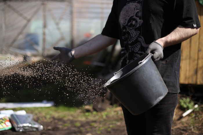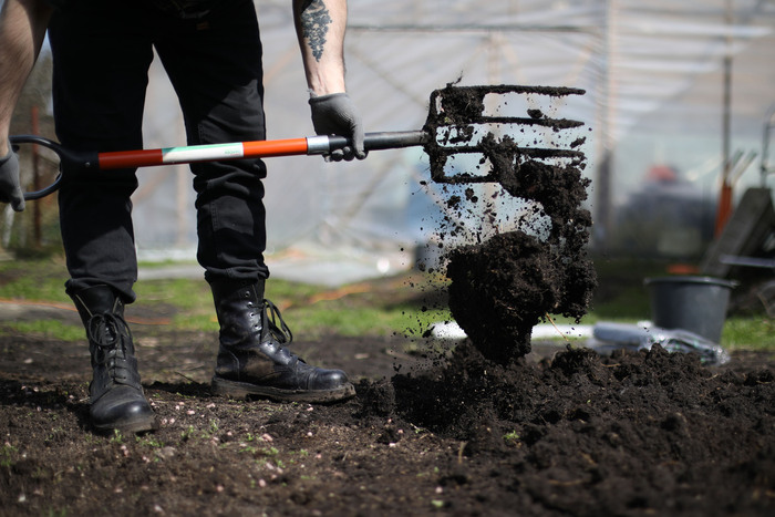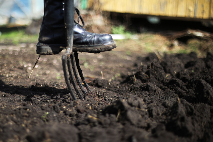Потом пришлось всё перекопать граблями вилами. Вообще, у меня накопилось довольно много фотографий с процессом, поэтому залью серией. Фотограф — Мария Плотникова.
