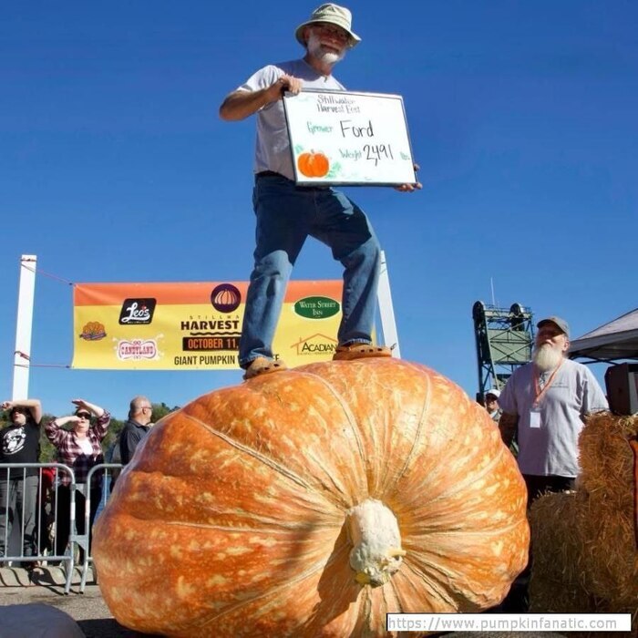 Сама тыква весила 987 кг, но из её семян выросло несколько тыкв весом более 1100 кг. Например, тыква 2491 Ford (та, которая растёт по соседству), и все они имели огромный привес относительно расчётов.