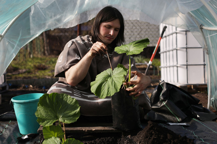 Тем временем нужно было высаживать ещё тыквы. Да, в теплицу помещается только два растения, но ведь есть ещё открытый грунт. В 2024 году в открытом грунте у меня выросла тыква на 771 кг и 817 кг. На очереди была тыква 2266 Kisamore. В представлении не нуждается.