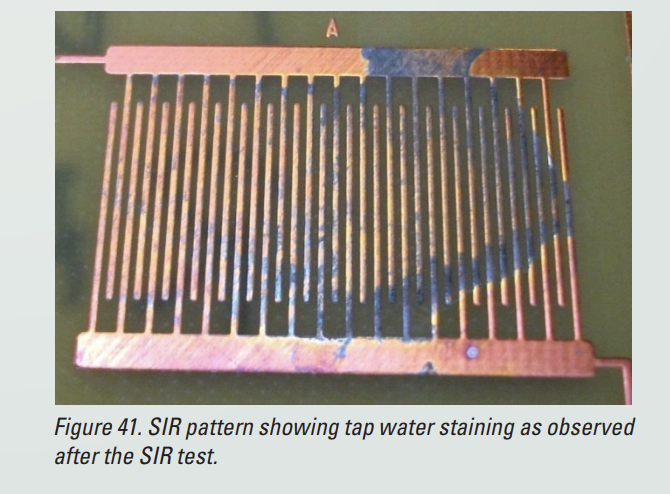Водопроводная вода — не средство очистки платы, а источник загрязнения. Это подтверждает эксперимент Эрика Бастоу из Indium Corporation, в котором водопроводную воду тестировали наравне с кожным салом, маслом конвейера печи оплавления, жиром от пиццы и кремом для рук. Все пять загрязнителей оценивались по влиянию на SIR (поверхностное сопротивление изоляции) — ключевой параметр электрической надёжности.