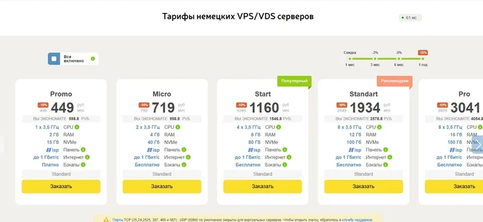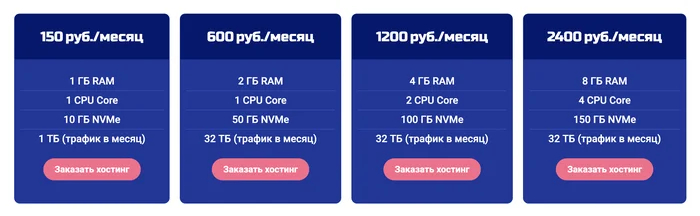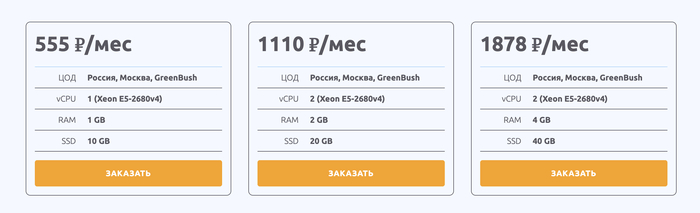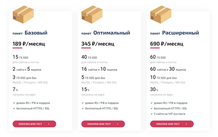 Тарифы на VDS-серверы в Hosting-Russia включают три основных пакета: