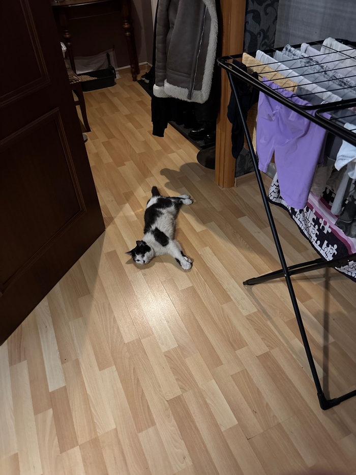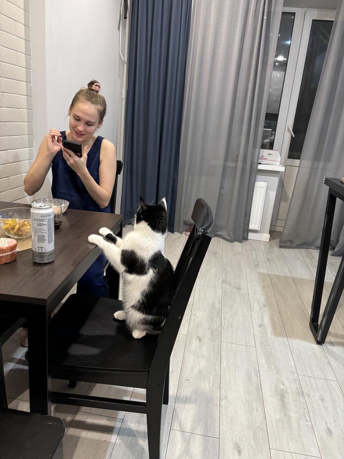 Вот мой, девушка увидела на улице когда жрал рыбью голову, женщина которая ему эту рыбью голову дала сказала что его обижают другие коты и не дают поесть спокойно, на спине был шрам с двух сторон, видимо собака укусила, жили тогда еще на сьемной, хозяйка не разрешала, но решили забрать, зная что через пару месяцев переедем в свою квартиру, когда забрали, несколько недель орал как ненормальный, ходил смотрелся в зеркало и орал, видимо думал что другие коты которые его обижали, лоток сразу нашел, щас, через полгода с нами перестал жрать корм, точнее ест без удовольствия, зато вот человеческую еду только так уплетает)
