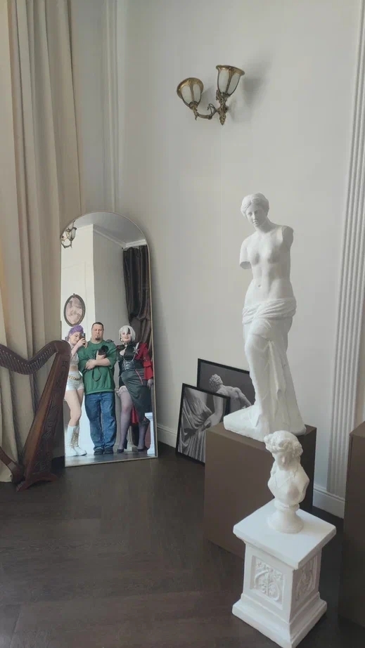 Вернулись около 3-х часов ночи и начали судорожно искать фотостудию с подходящей локацией. Задача было осложнена тем, что надо было найти ту, что подходила бы под персонажей Руми из KPop Demon Hunters и Арлекино из Genshin Impact (коллаб года).
