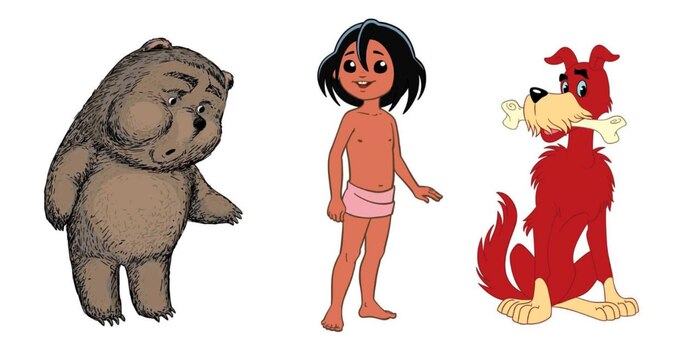 Медвежонок, Маугли и Бобик (который гостил у Барбоса).