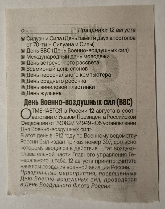 13 XLR55 2 месяца назад Серия 2025 2025. 13 Августа Показать полностью 3 Отрывной календарь 2025 Праздники Длиннопост 2 Ещё 0