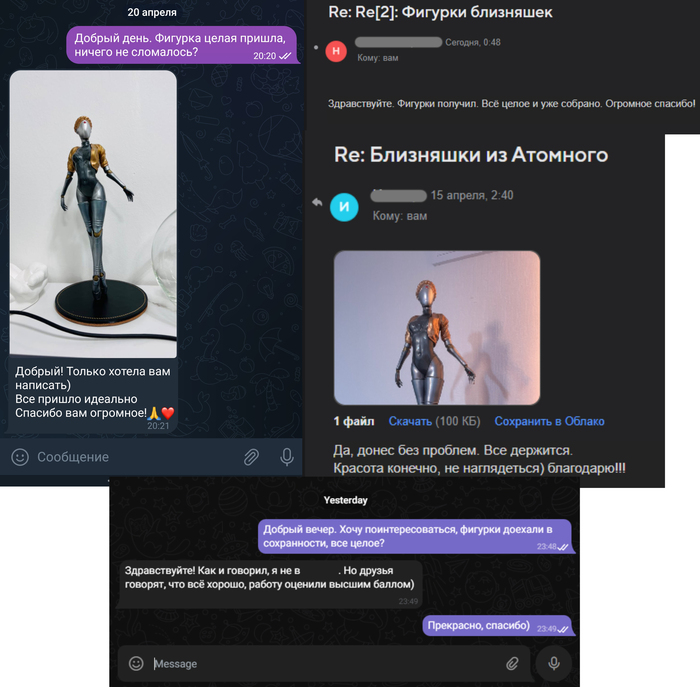 Телеграм каналы, где распространяют модельки, стали использовать мои фотографии к моделям балерин. Мне не жалко, просто забавно. Где они их взяли ума не приложу. Также Playground.ru выложили статью про продажу фигурок на авито, с моими фотографиями на заглавной картинке, однако, на авито я фигурки не продаю.