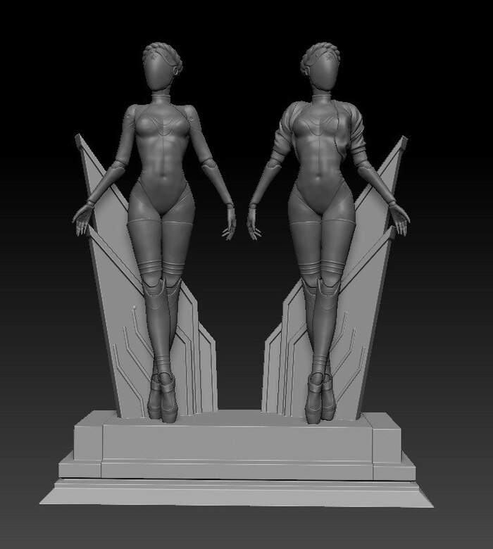 Итак, 14 балерин, и первое на чем я споткнулся - это сроки. Я обещал 10-14 дней, а по факту управился в 1.5 месяца. Я благодарен всем за терпение и в дальнейшем буду сразу давать срок 1.5 месяца, а если сделаю раньше, то все будут только рады. На этом негативные моменты закончились и дальше только позитив и созидание. Я взял другую модель, более правильную и детализированную, без выраженного искривления позвоночника. Некоторые пикабушники попросили поставить балерин в позы из игры, на что ушло около недели, чтобы согласовать все детали. Использовал Zbrush, разделил модель на части, поставил в нужную позу и доделал соединения. Делать моделькам риг, чтобы их согнуть не имело смысла, так модели высокополигональные (>3млн) полигонов, и, что Maya, что 3D's Max отказывались адекватно работать. Да и раскидать веса полигонов крайне проблематично при такой плотности сетки. Собственно вот эти позы: