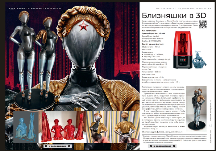 После публикации предыдущего поста мне написали с журнала "Открытые Системы" с предложением разместить мои фигурки в журнале в тематике 3D печать. Сделали даже целый разворот.