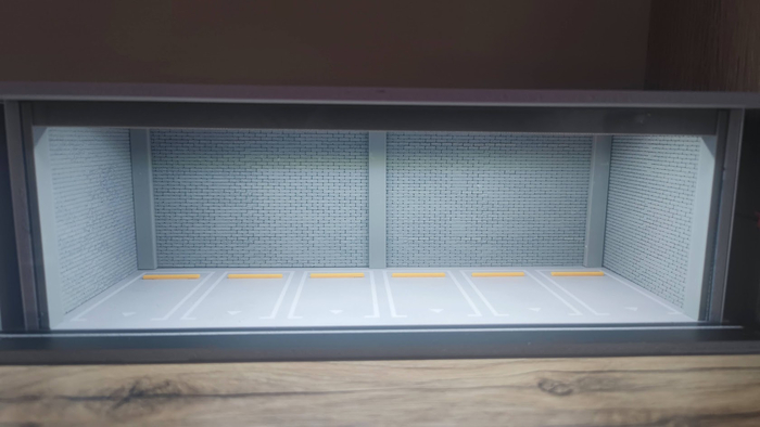 Буквально за несколько минут безликий пластиковый контейнер преображается до неузнаваемости. Перед нами уже не бокс, а стильная, минималистичная подземная парковка, каждая ячейка которой — это персональное машиноместо для вашего масштабного автомобиля.