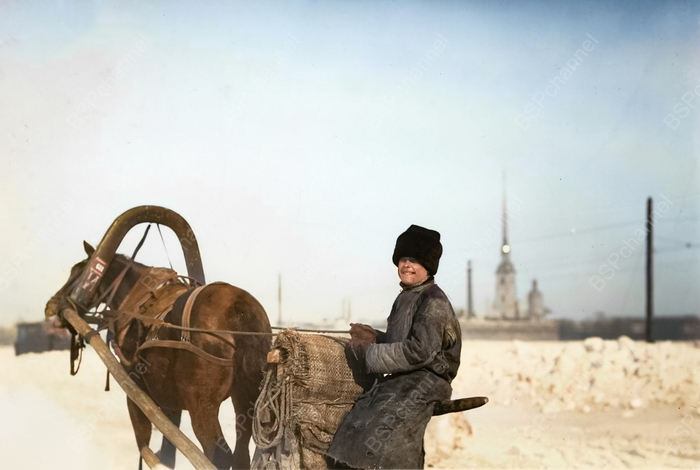 Крестьянин на санях. Сокольничье шоссе. Москва, 1904 год.