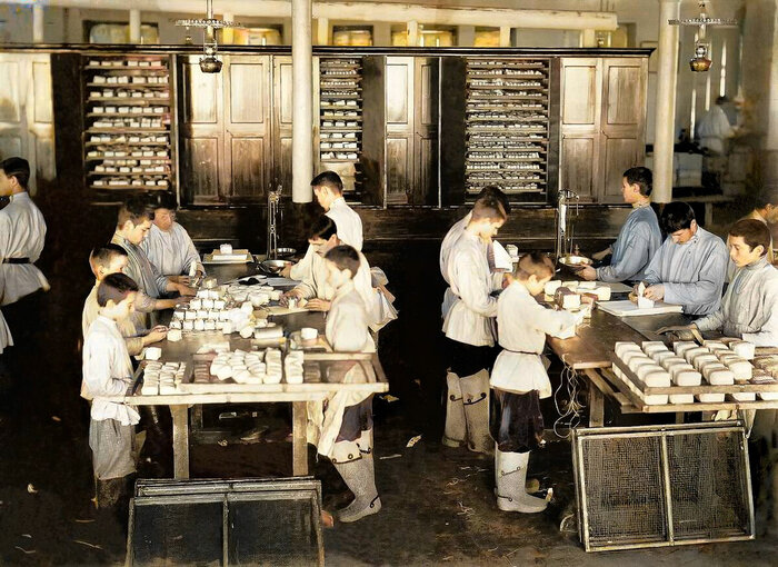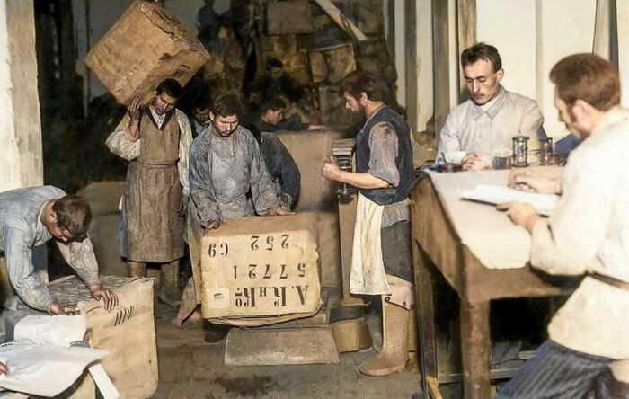 Рабочие у станков на Заводе С. Х. Рандрупа, 1910 год.