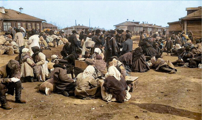 Крестьяне-переселенцы на станции Омск, 1908 год.