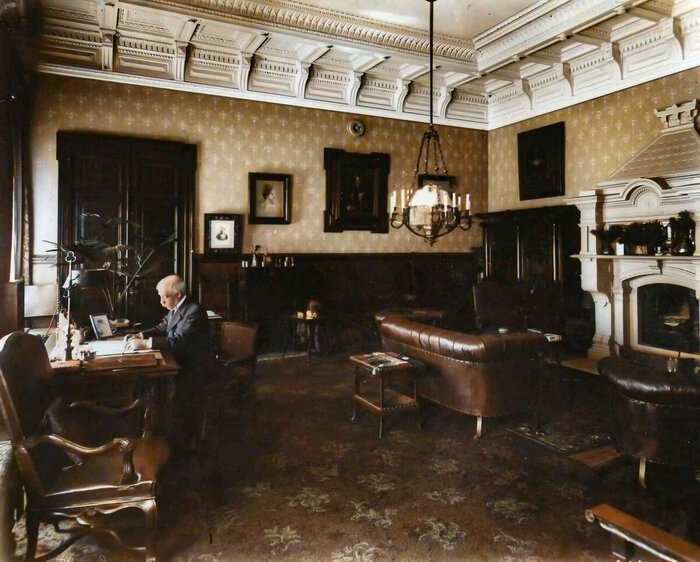 Сотрудник посольства Германии в кабинете за работой, 1906 год.