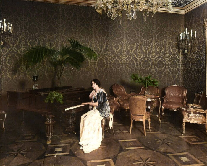 Итальянка у рояля в гостиной. Итальянское посольство. Фото 1900-х гг.