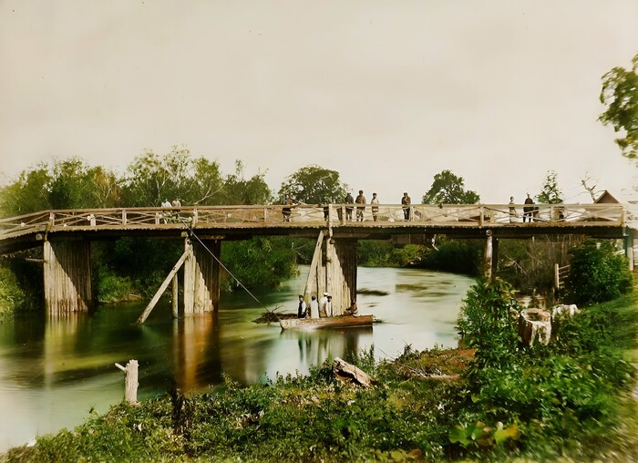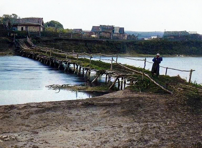 Мост через реку Дему. Башкиры. Башкортостан (Уфимская губ.). 1908 год.