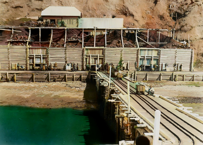 Ссыльно-каторжные внутри каменноугольного рудничного дворика.