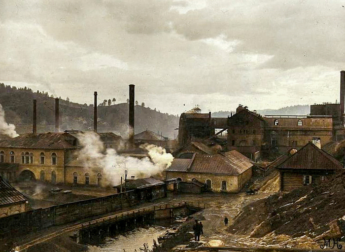 Круковский М.А. Оружейный завод у горы Косатур в городе Златоусте. Башкиры, татары, русские. Челябинская обл., г. Златоуст (Уфимская губ.). 1908 год.