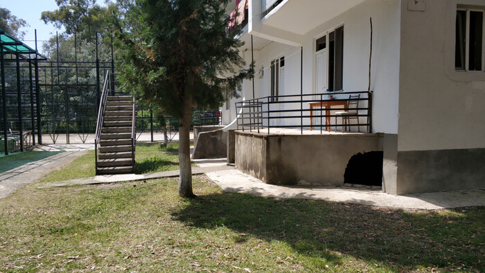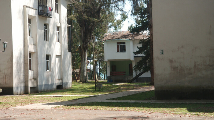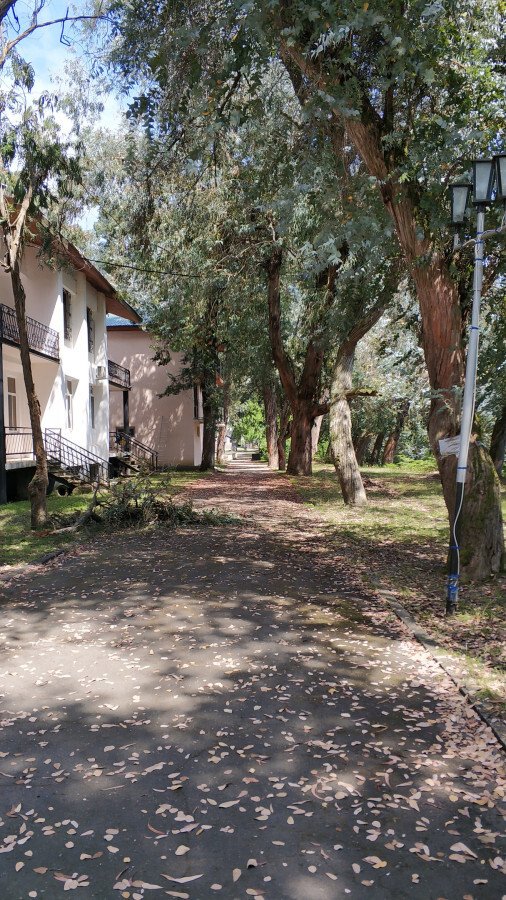 Пансионат Эвкалиптовая роща. Находится в собственности у местного, который вроде как в нем же и живёт. У входа в пансионат немножко разрухи. Находится в селе, с говорящим названием Кындык. Стоимость в сутки выходила кстати порядка 4000 рублей (с питанием).