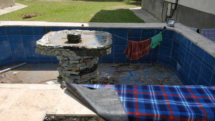 Фонтаны на территории, которые сейчас используются как сушилка для белья...