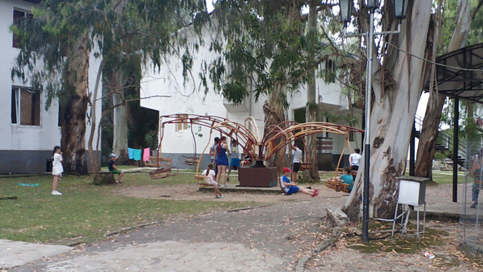 Еще одно советское наследие - карусель, которая когда-то работала, а сейчас приводится в движение мускульной силой родителей)