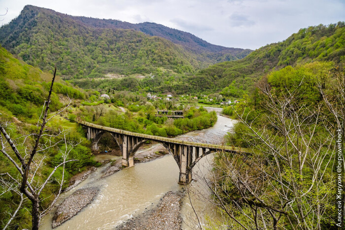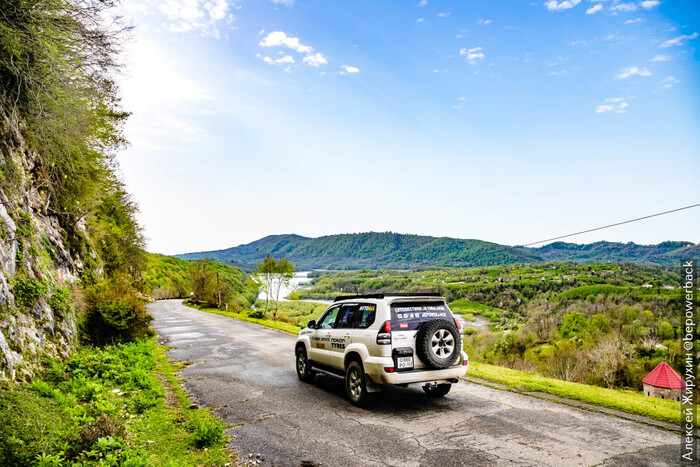 Из 9 человек наших ребят утром смогли прийти на экскурсию только 4. За нами приехал древний автобус с абхазом за рулем и бабулечкой в роли экскурсовода. Автобус почти битком забит отдыхающими мамашами с детьми и пенсионерками. Доехав до границы, где должны были ее сами перейти, мы с ребятами с ВФМС дружно поняли, что это не наш вариант, и пошли в обратную границе сторону. Бросать начатое дело не хотелось, поэтому мы решили снять машину и прокатиться по тем же местам.