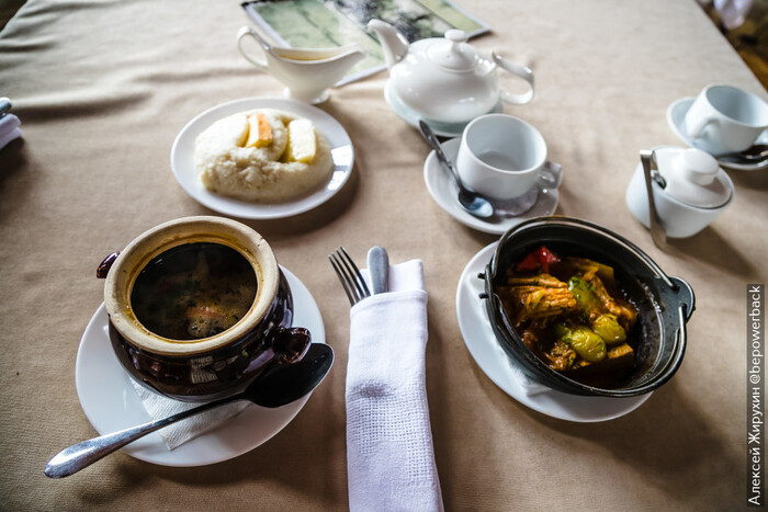 Решили перекусить в нетуристическом месте, остановились в придорожном кафе с приятными ценами относительно России. Попробовали мамалыгу (в прошлый раз я ее ел в Молдове), шашлык и хачапури. По ощущениям, цены стали выше, чем в мое прошлое посещение этой страны 3 года назад и примерно в 2 раза дороже Грузии, где катался в мае этого года.