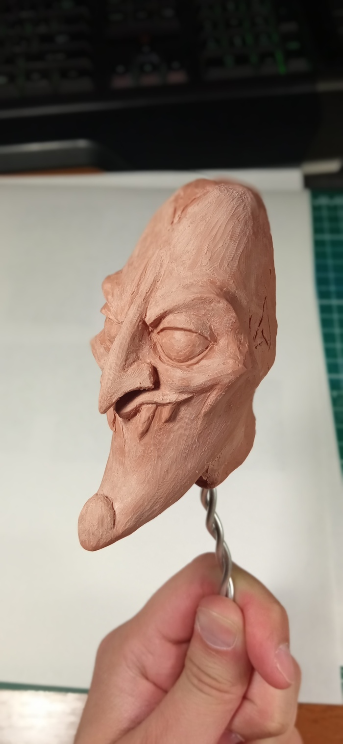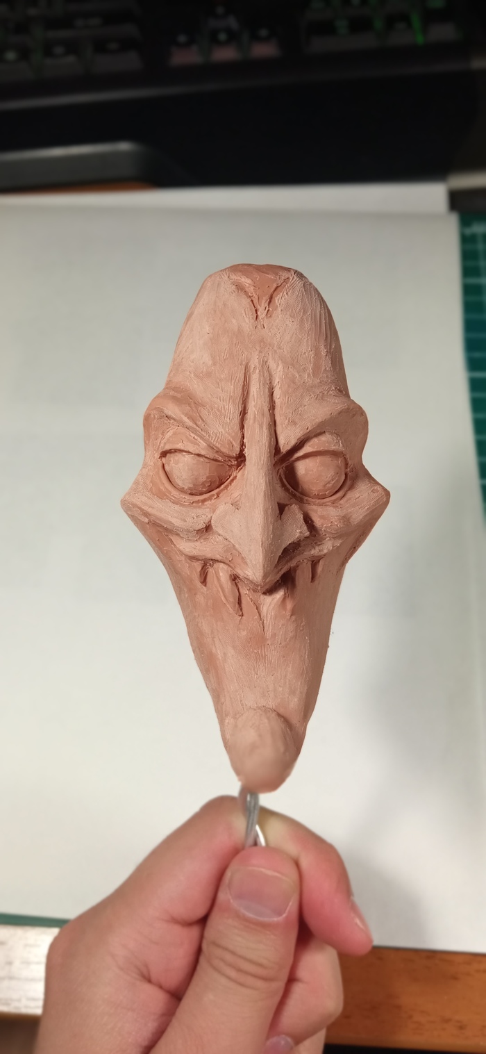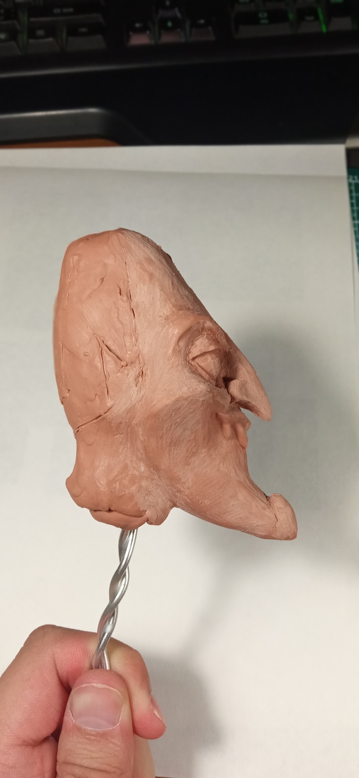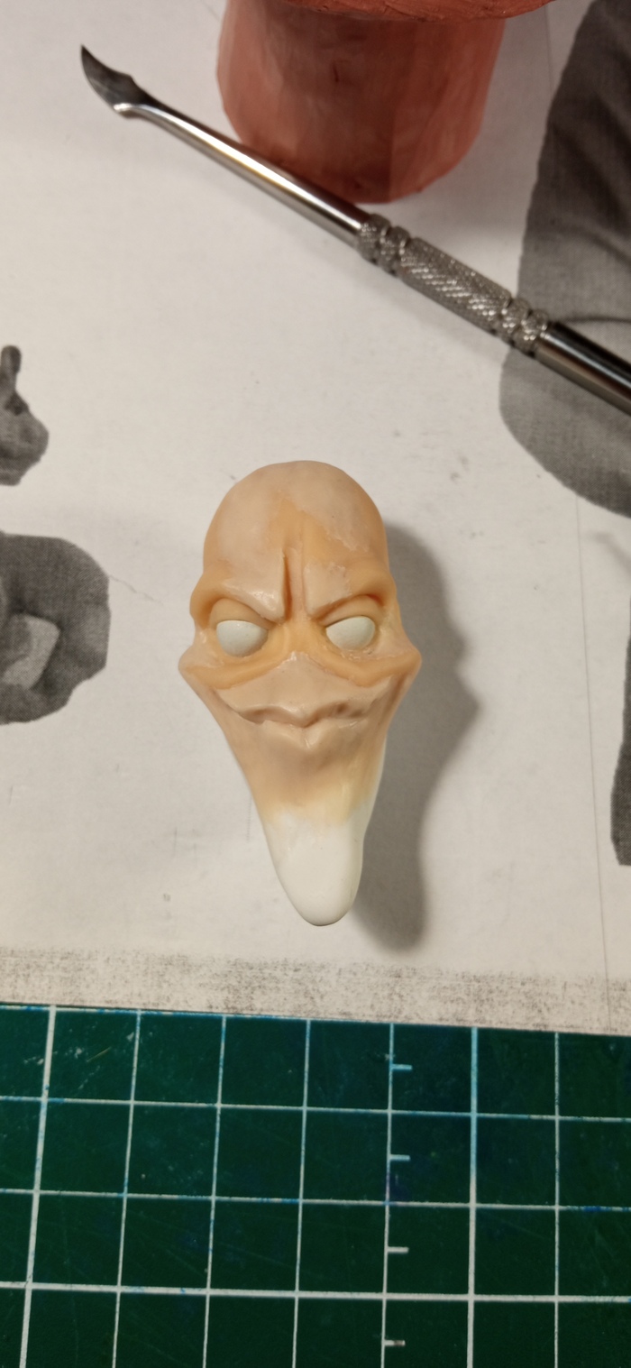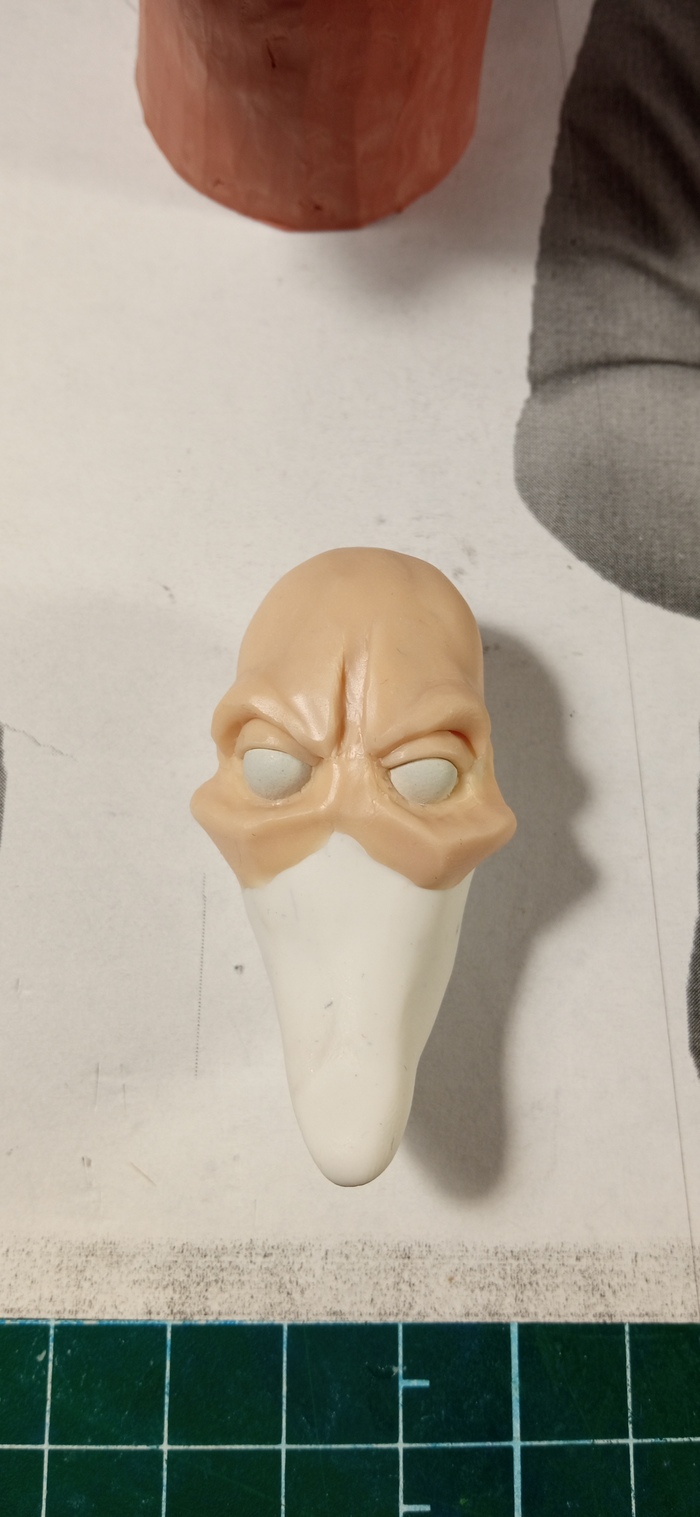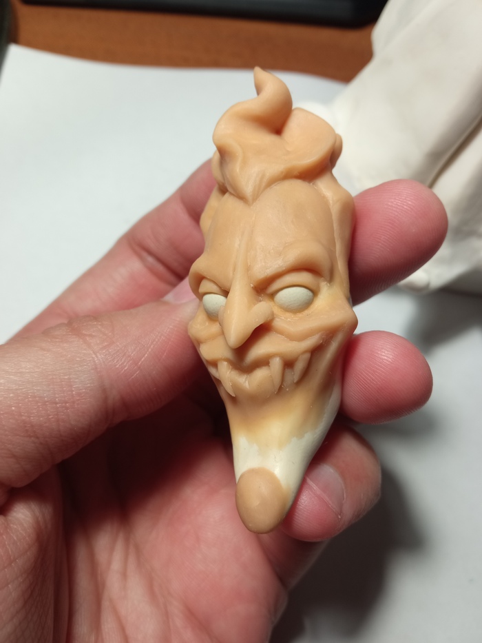 Бывает так, что во время работы понимаешь, что какая-то часть тебе ну совсем не нравится. Иногда проще переработать деталь с нуля, чем пытаться ее исправить. Как, например, получилось у меня: сперва я сделал нос, потом убрал его. Далее слепил рот, но понял, что он слишком высоко и совсем не подходит по месту.