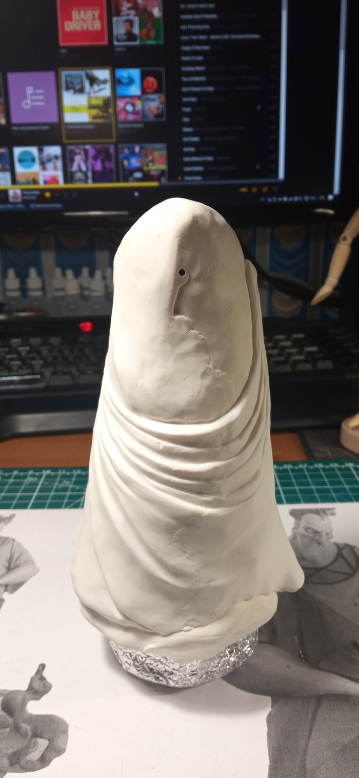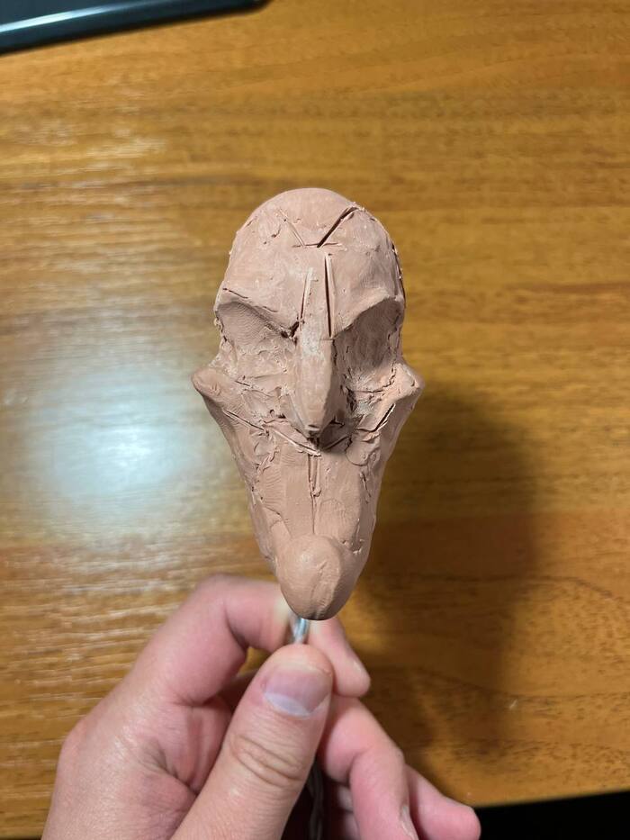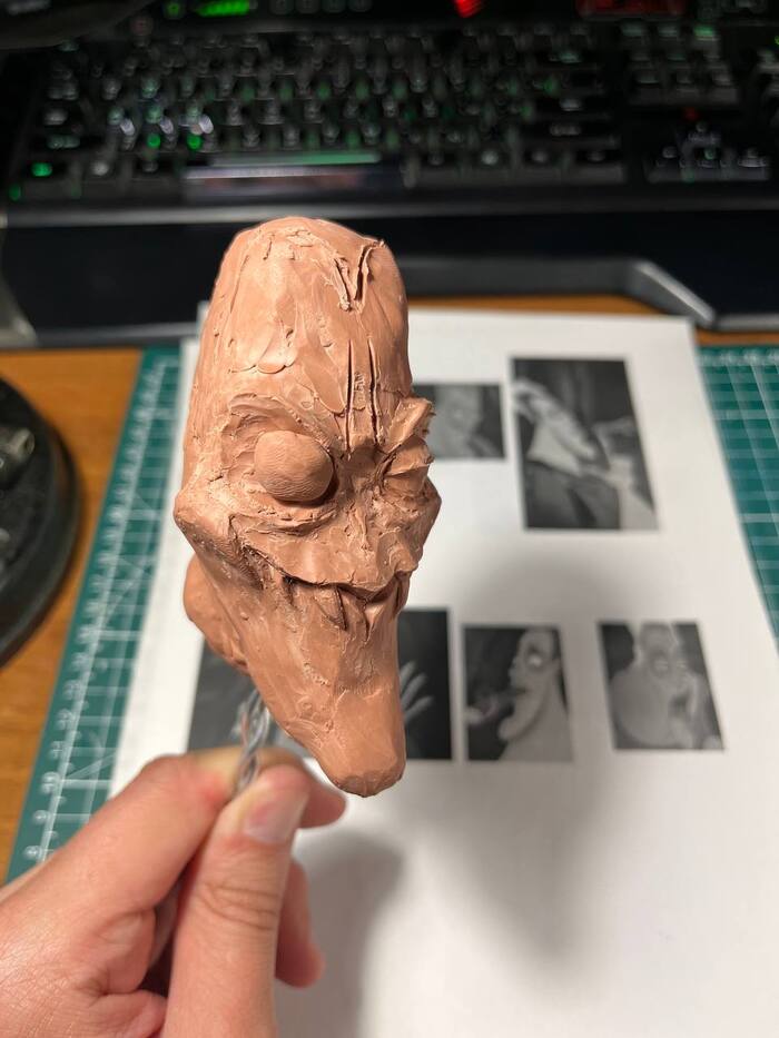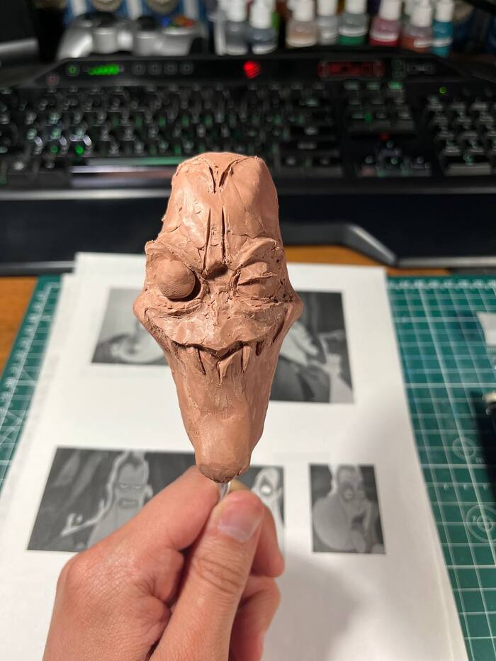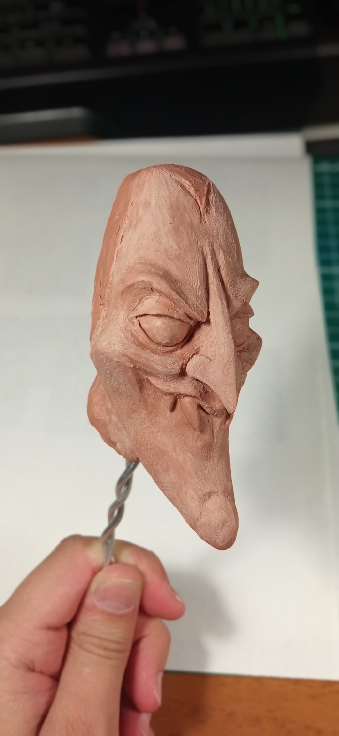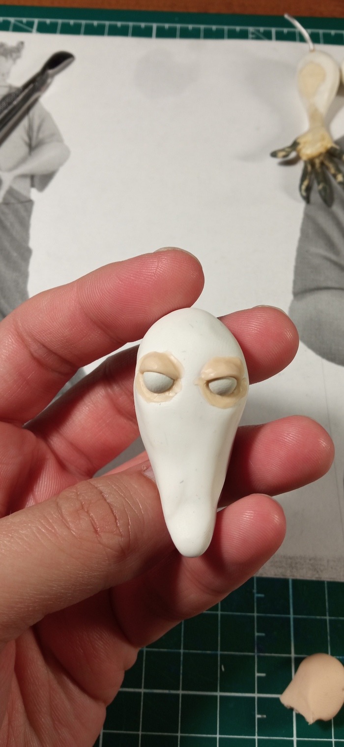 Бывает так, что во время работы понимаешь, что какая-то часть тебе ну совсем не нравится. Иногда проще переработать деталь с нуля, чем пытаться ее исправить. Как, например, получилось у меня: сперва я сделал нос, потом убрал его. Далее слепил рот, но понял, что он слишком высоко и совсем не подходит по месту.