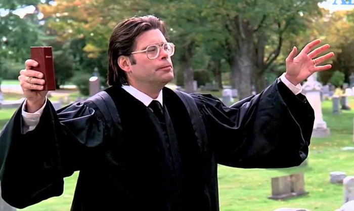 Например, в фильме "Кладбище домашних животных" Стивен Кинг сыграл священника во время церемонии похорон. А в фильме "Оно. Фильм 2" он сыграл продавца в антикварном магазине.